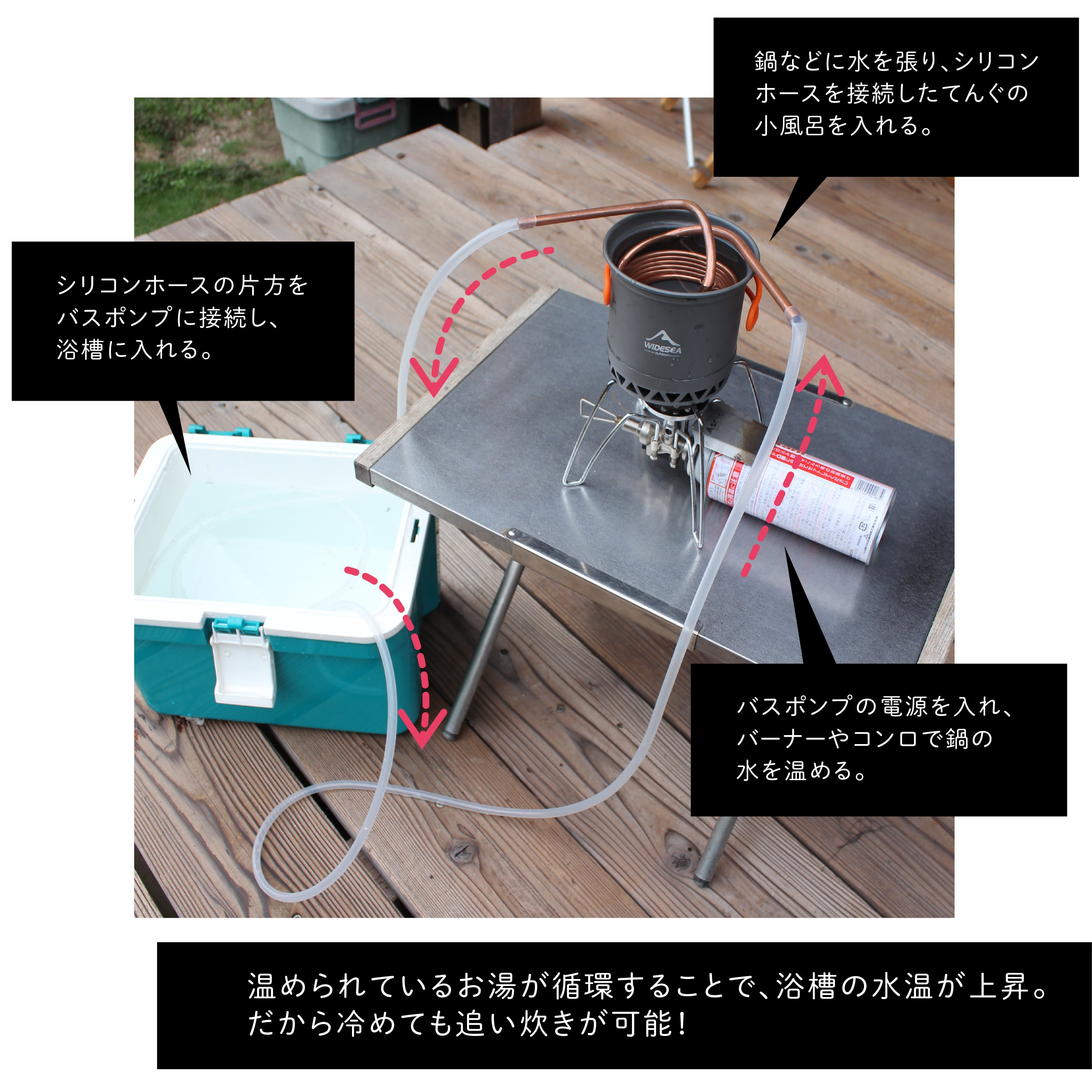 鳥のさえずりを聞きながら、川辺で自作のお風呂を楽しむ