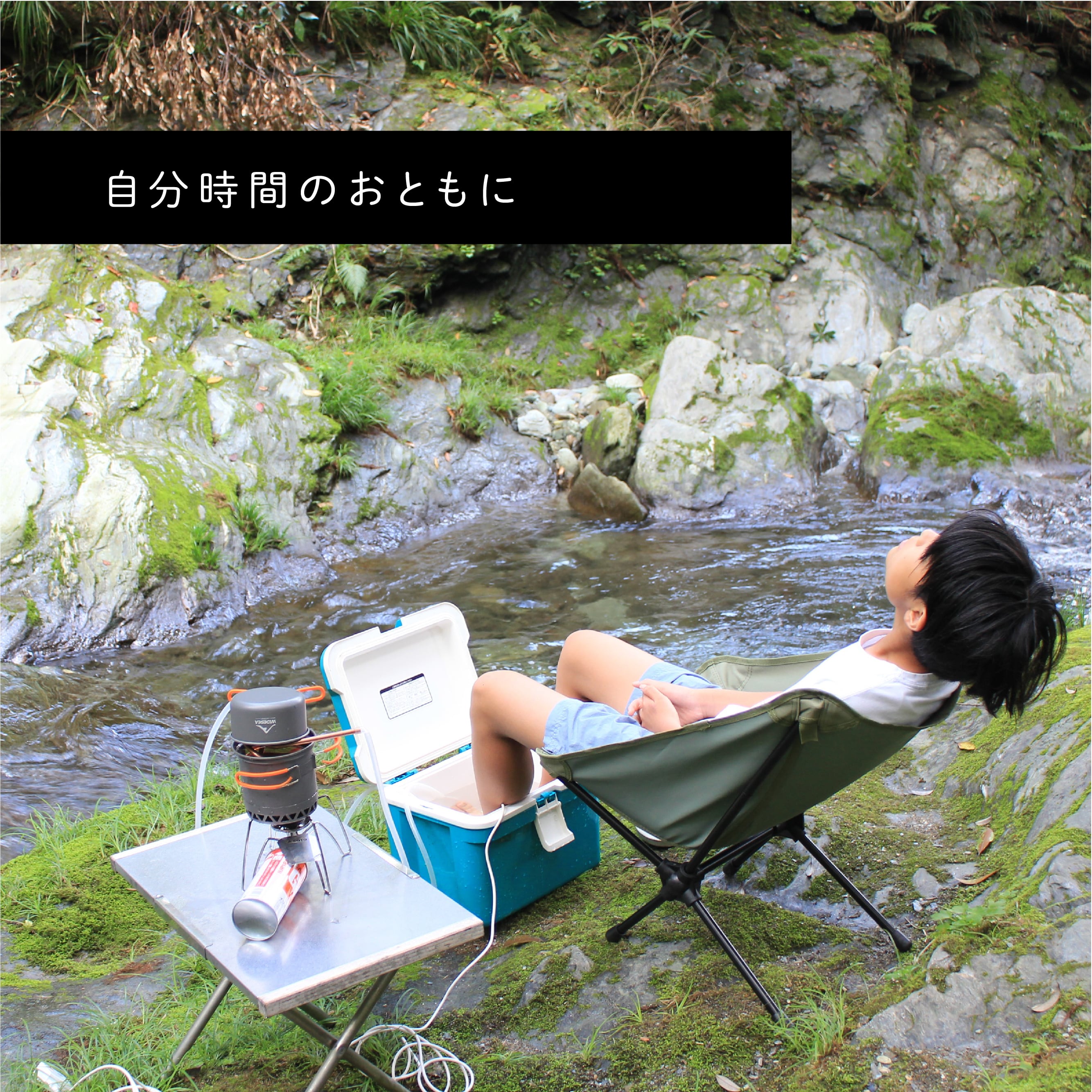鳥のさえずりを聞きながら、川辺で自作のお風呂を楽しむ